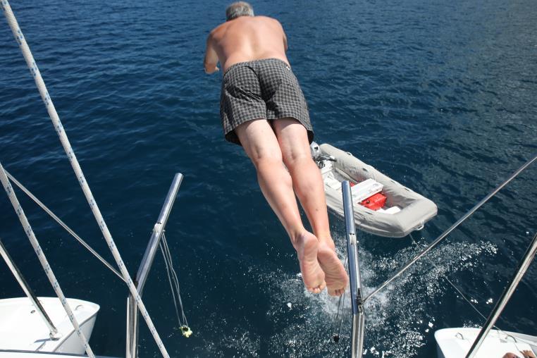 After that we all jumped into the warm water and swam around for an hour. (We’ve since cut back on our harbor swimming because we’ve been told the gray sharks are 12-14 feet long here).