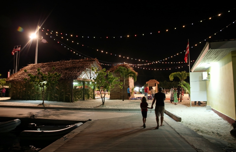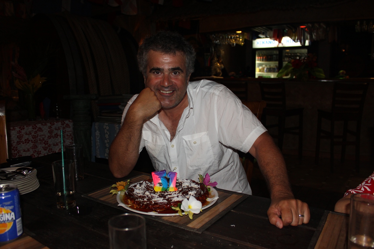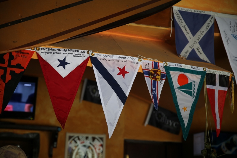 We then dinghied in to the hotel’s restaurant, which is appropriately names Chez Leo. It’s what we thought all of the beach restaurants in Polynesia would actually look like: big open room that reeks of history with hundreds of flags and burgees hanging from the ceiling.