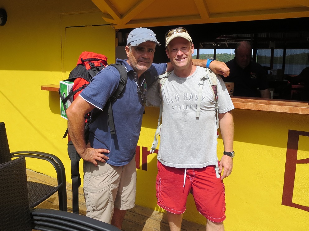 5: I seem to cut my hands every day. Our friend Will from Hydroquest calls them “Boat Bites”. They most often come from hidden hose clamps in the bilge. (I am now a master marine sanitation expert and never have to worry about job security for the rest of my life.) The worst ones come from fishing. In Port Maurelle I caught a reef fish using bait off of Sophie’s stern to prove to a neighboring 7 year old boy that you could actually catch fish in the harbor, and the little F&*%ER (the fish) had a hidden barb at the base of his tail that punctured the tip of my left middle finger, causing me incredible agony but fortunately no poisoning. Another bad cut came when I stabbed myself in the thumb with a fileting knife when I tried to cut the gutline from the head of a mahi mahi at the exact moment a big wave hit Sophie’s stern step (which is where I was standing). Every time I cut myself I yell out in pain, and Jenna comes running with a worried look on her face assuming I am having another bad injury.