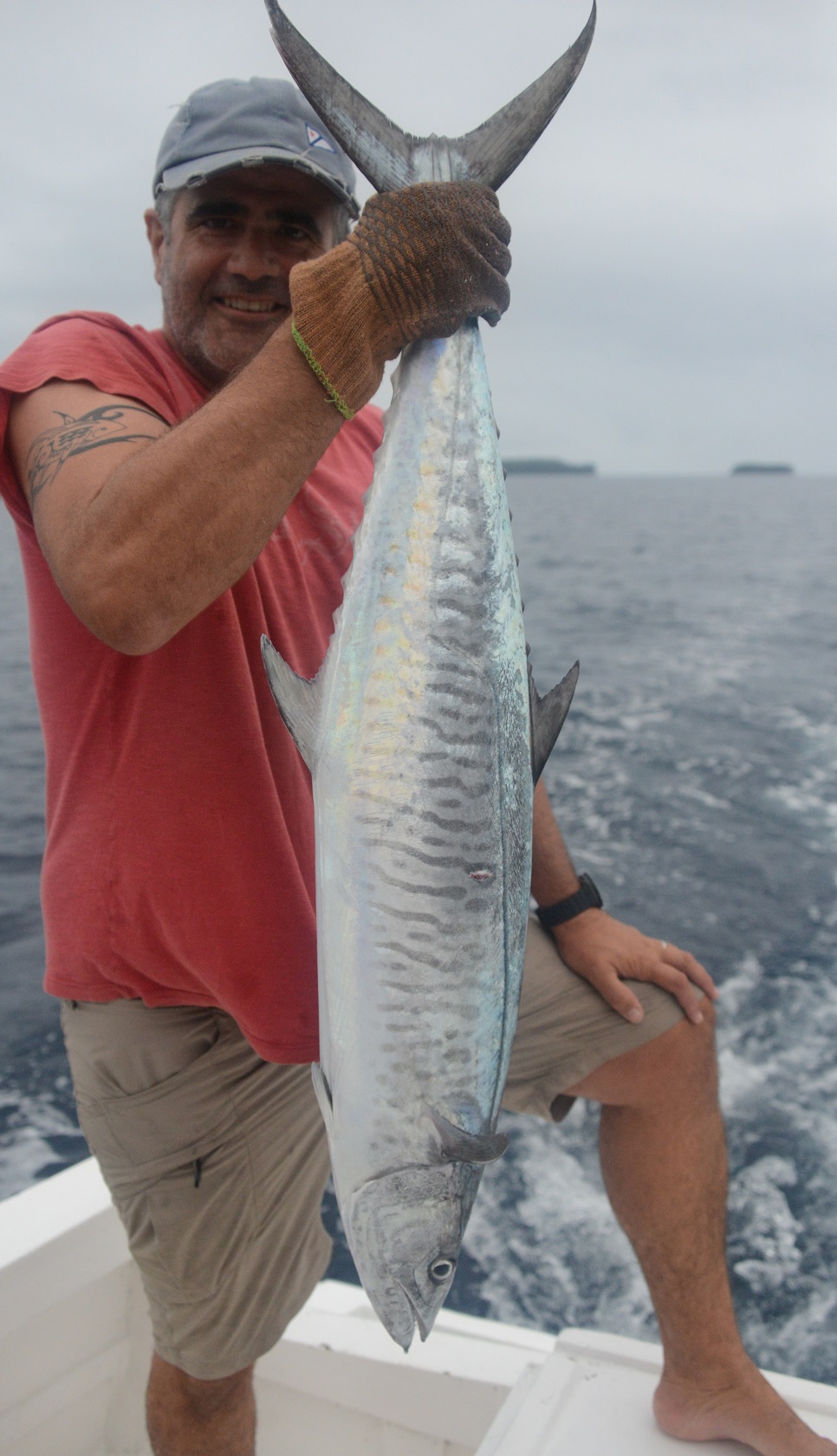 It was our first offshore trolling success on Sophie since the day we caught the wahoo and 2 mahi mahis off Bora Bora. While in Tonga, Steven Fell and I upgraded our meatlines to 400 pound test and built new shock absorbers.