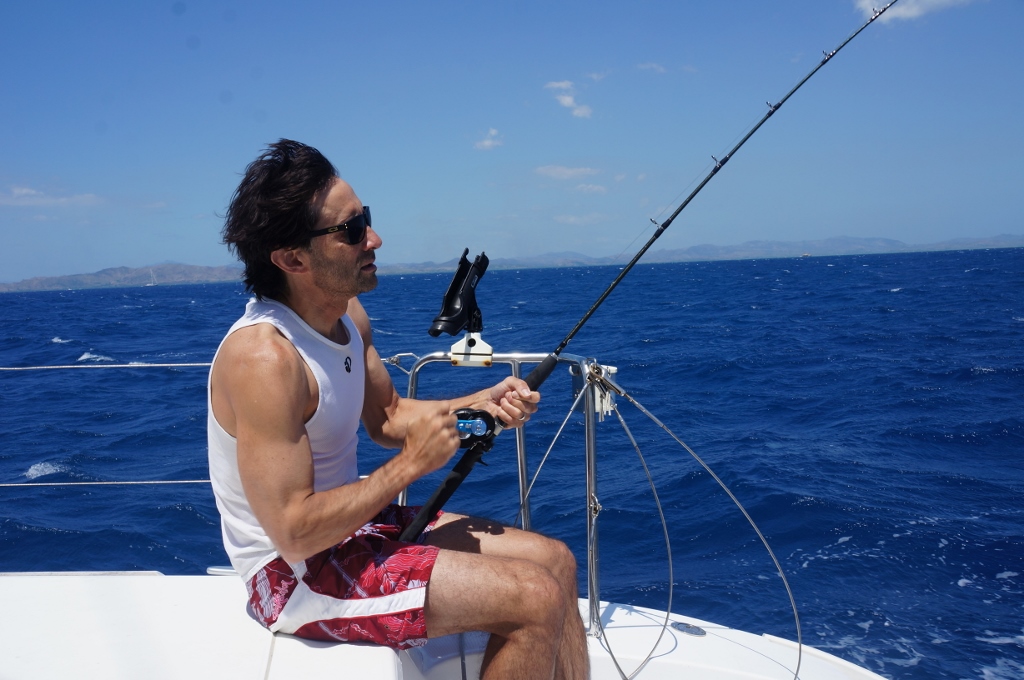 I am now convinced that the leading source of damage to sails offshore is the use of electric winches for reefing and trimming. All of that extra power in the wrong hands can cause things like canvas, lines and blocks to break. That’s how we lost a reefing line on the Marquesas passage, how we tore the sail on the way to Rarotonga, and how I broke a downhaul in Fiji. Personally I have become much more gentle in how I use the electric winches offshore, relying way more on a sense of touch rather than brute force.