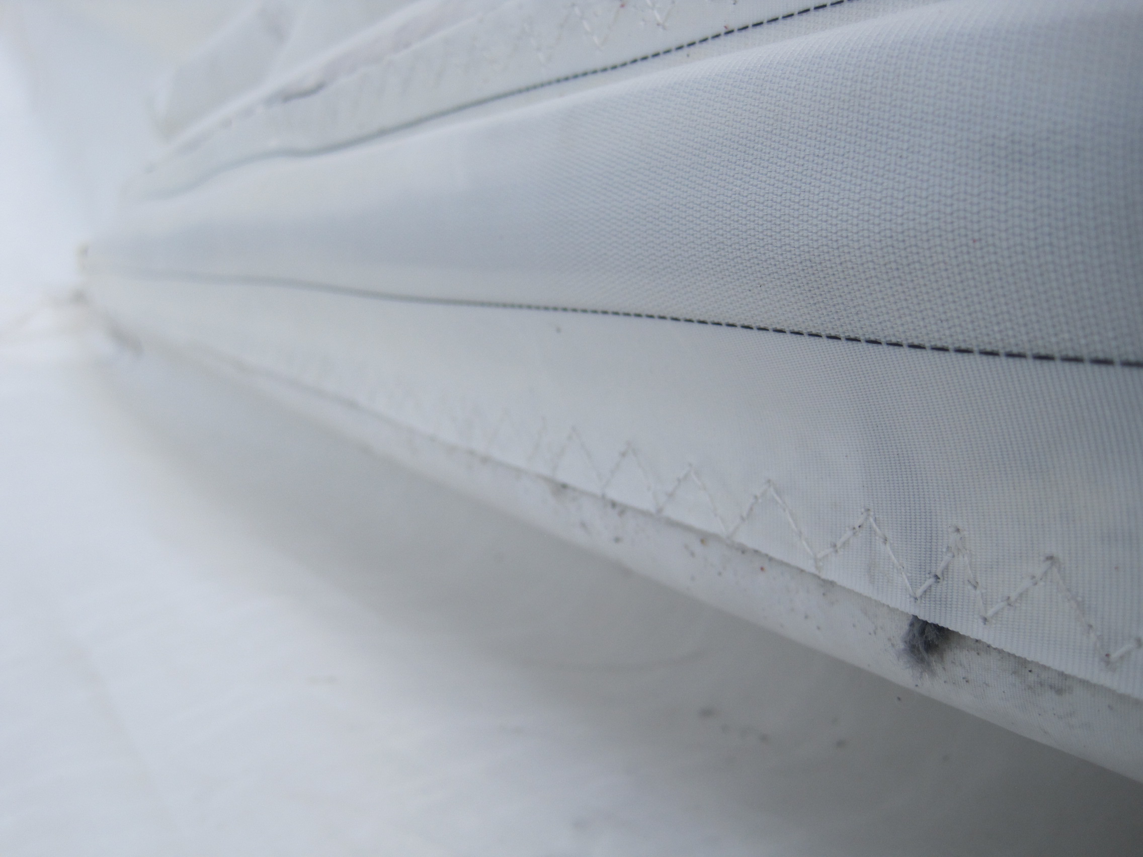 The jib needed some work as well. North Sails replaced the tape that runs along the foot and leach, repaired some damage to the sunbrella, and reinforced and enlarged a chafe patch where the sail can hit the spreaders.
