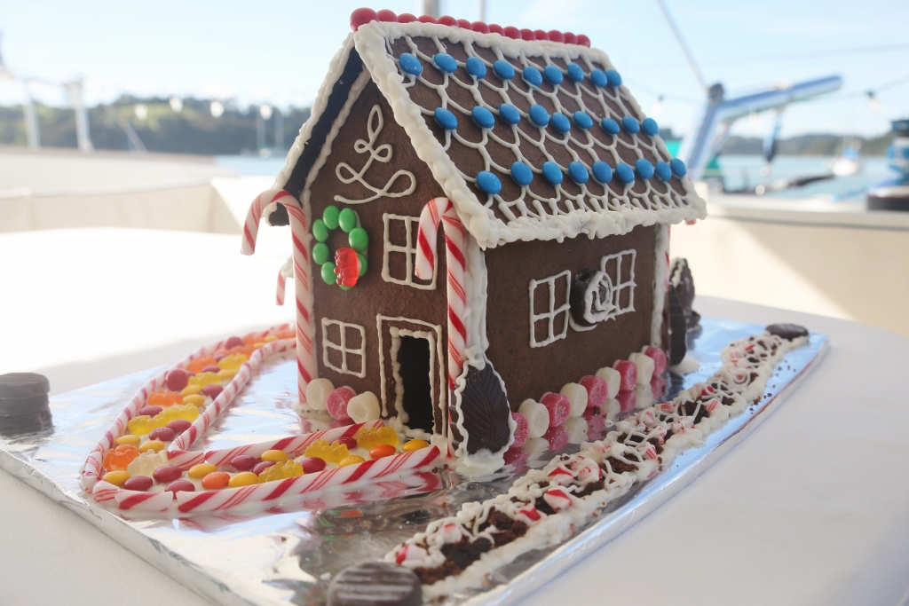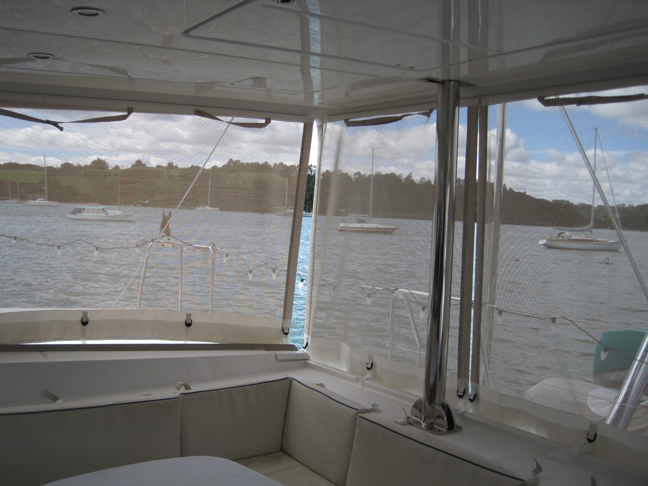 When we were in San Diego, we went to a Home Depot and bought some inexpensive deck shading material, and en route to the Marquesas we fabricated some makeshift aft cockpit shades. These turned out to be ugly but practical, and a lifesaver during late afternoons when the temperature was still in the high 90s. We decided to splurge and have the local canvas shop fabricate some permanent sunshades using the same fittings used by our winter cockpit enclosure. We hope to have these done and in place in time for the after party we’ll wind up hosting on Sophie after we attend the Boxing Day races with in Auckland with Misti Landtroop in a couple of weeks.