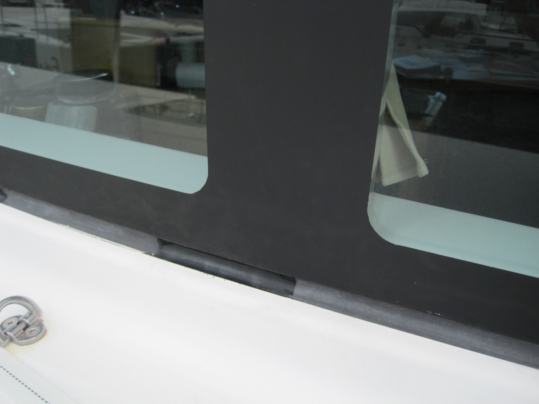 And here is a closeup of the hole in the window seal. It’s amazing how such a small pinprick in the window seal can result in such a large amount of inflow when you are offshore in beam seas.
