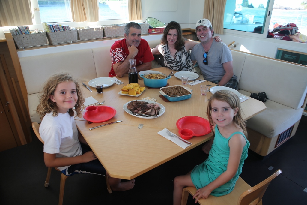 While we were table-less, our friends Jeff and Melody from Double Diamond came over for a drink and brought their Lagoon 440’s aft cockpit cocktail table with them. It fits in the exact same holes as Sophie’s big table and was a fun alternative, creating more of an aft cockpit lounge vibe. So we are going to look into having a small cocktail table made, either from a small surfboard or wakeboard, and use that for special occasions. We need to have this ready before Randy and Susan’s next visit.