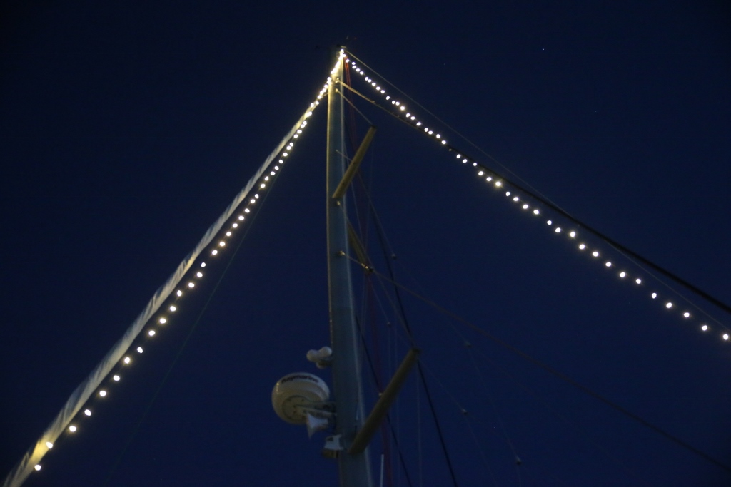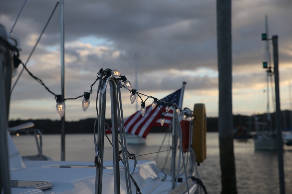 We had 3 halyards tied to the crossbeam to help stabilize the mast, but it still wasn’t the same as having a forestay. And it wasn’t just me and Jenna feeling a bit of unease, some of our neighbors joked that they were worried Sophie’s mast could come crashing down on them. But everything worked out OK.