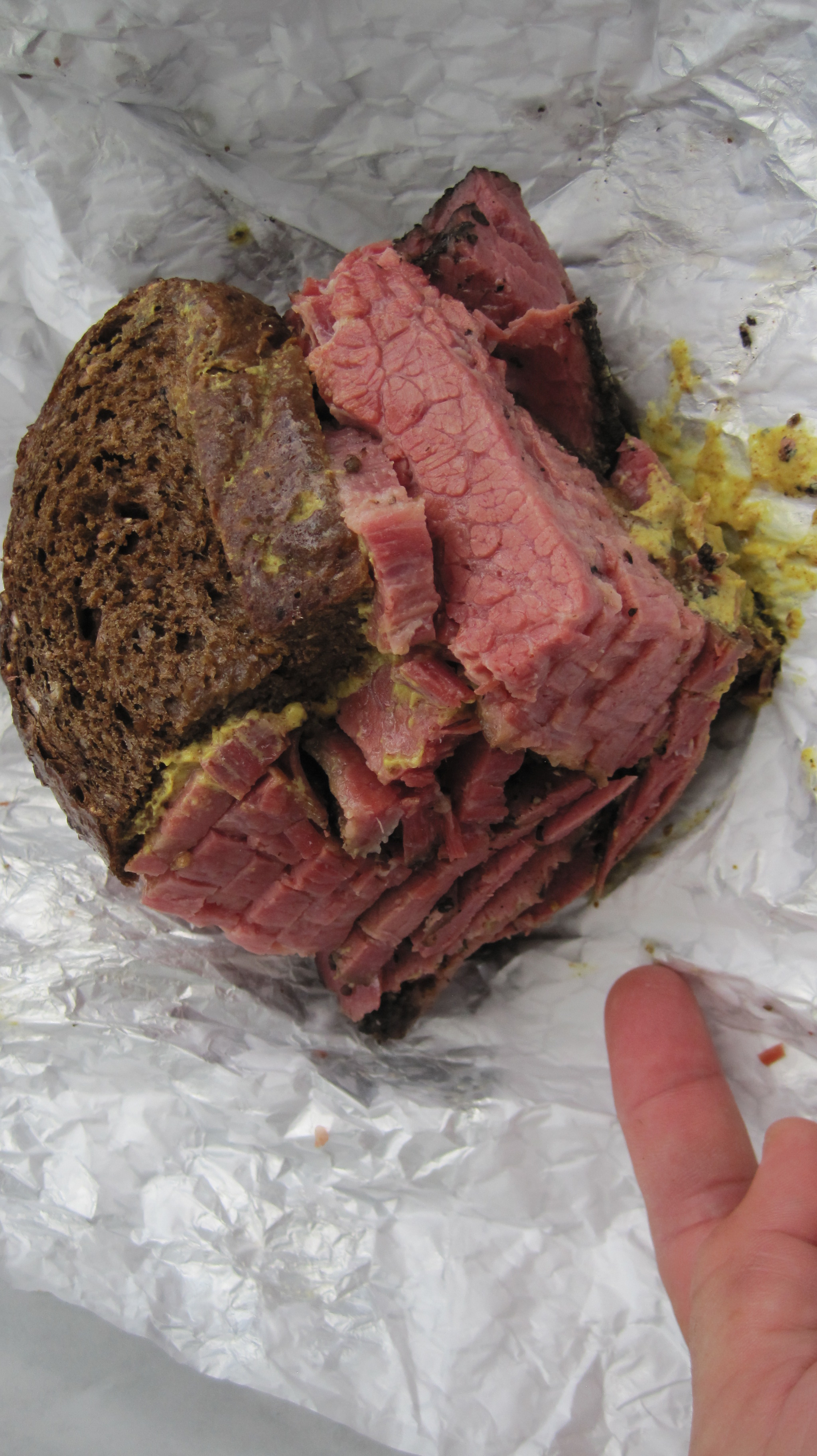 I decided to be much more subdued and ordered a simple pastrami sandwich, one that I agreed to split with my classmate Laura. Well, this is what HALF a sandwich looked like: