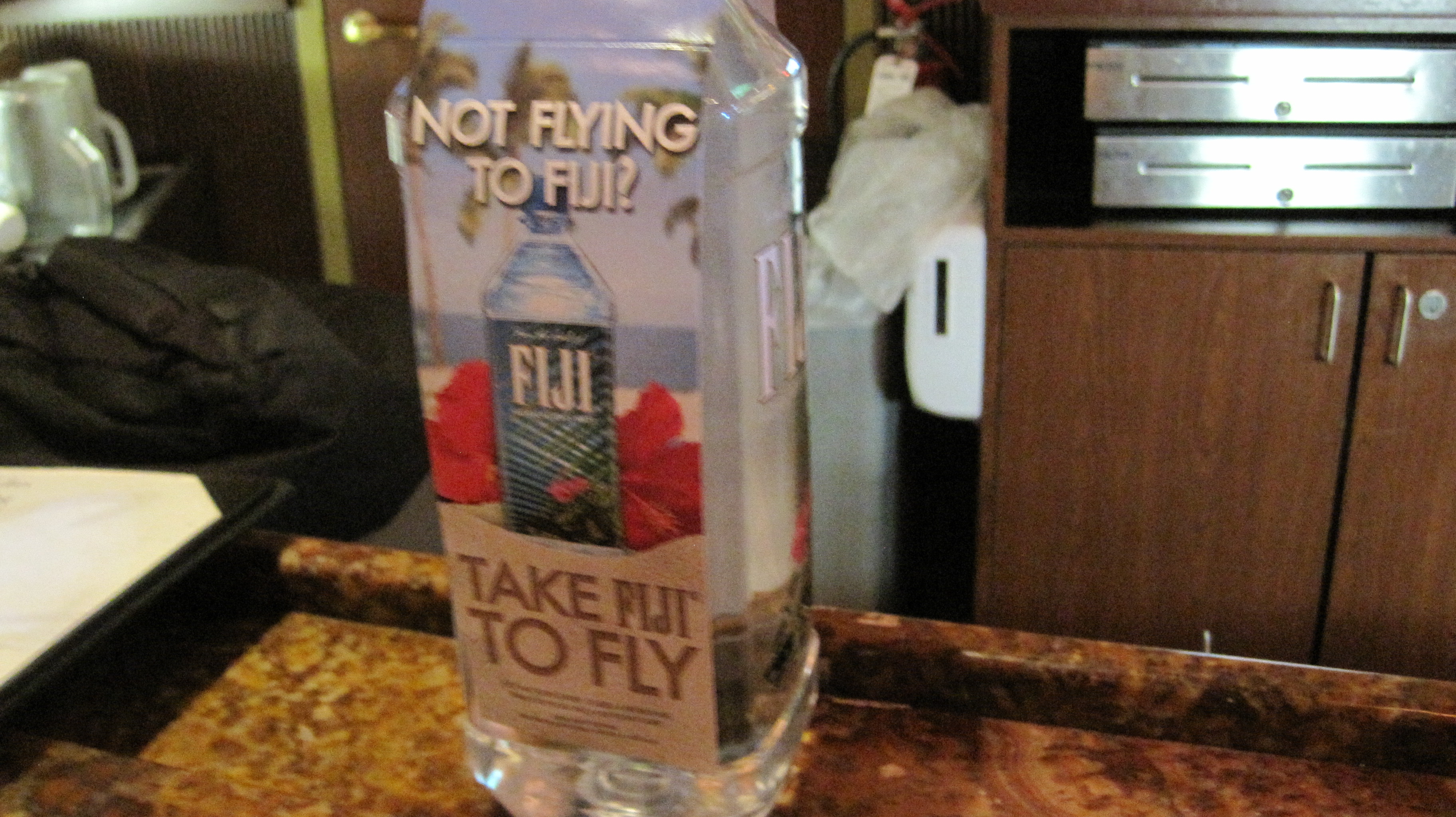 At the bar at Logan Airport there was a display advertising Fiji Water.