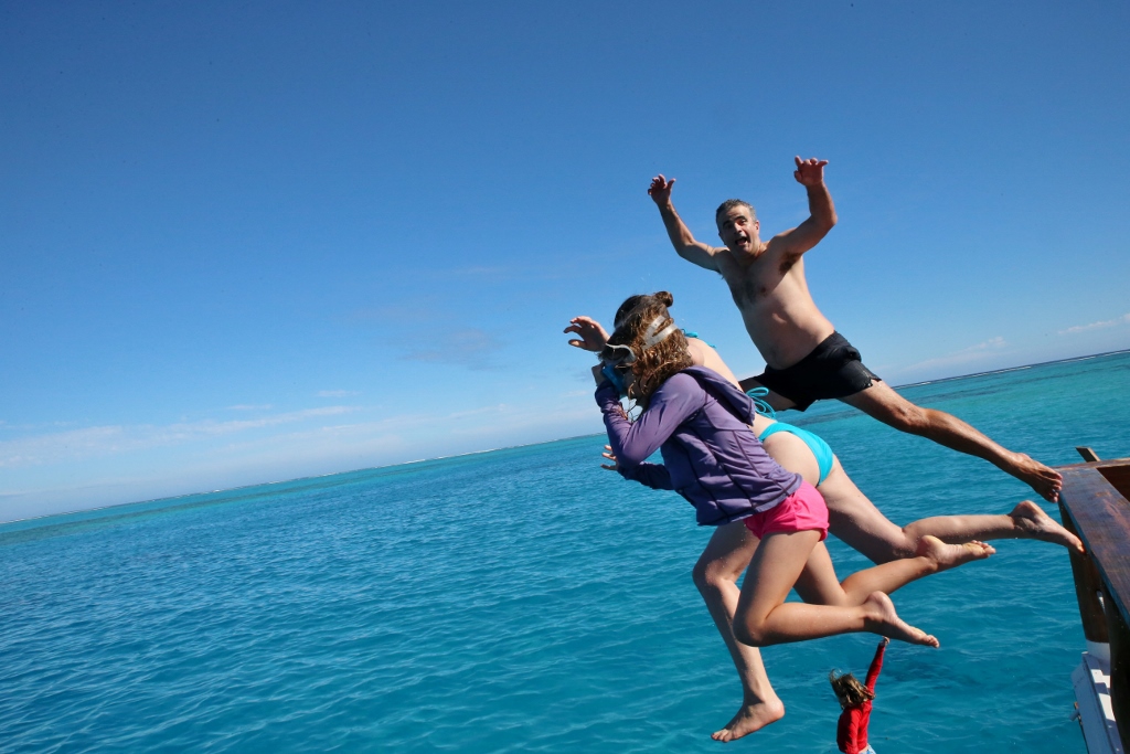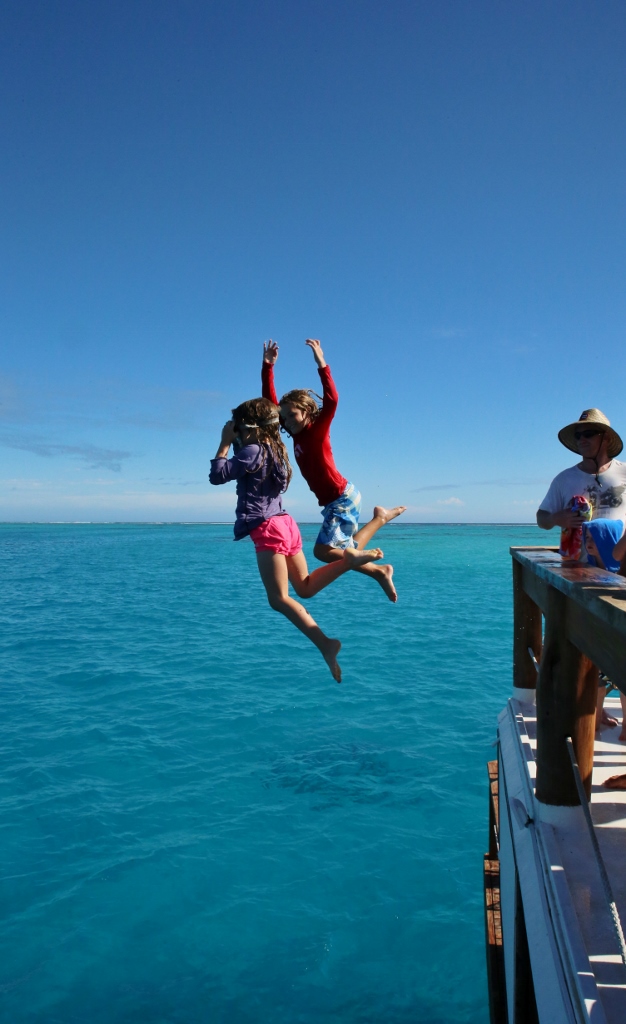 This year, everyone made the big leap into the water from the upper deck. Both kids are fearless!