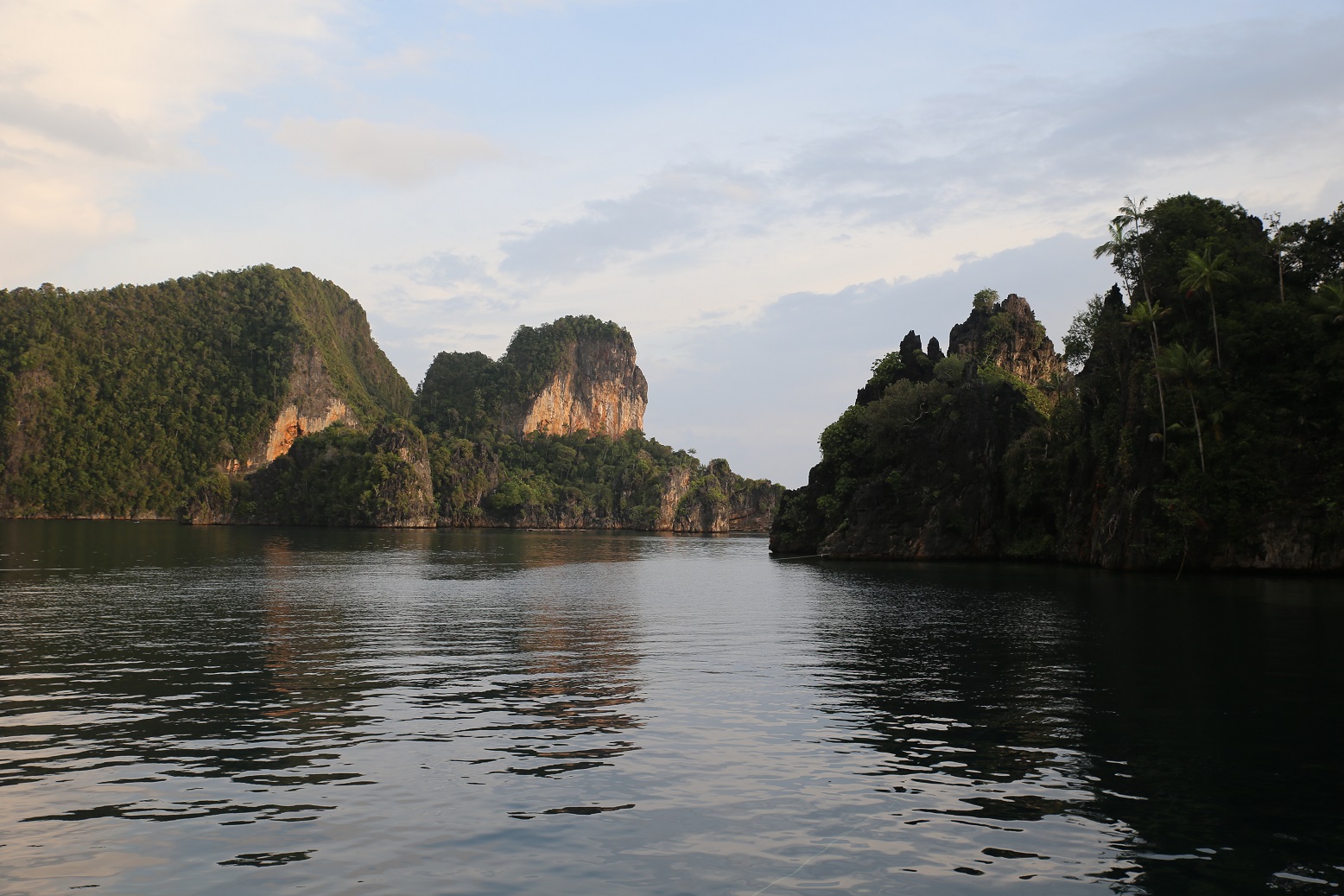 GO HERE INSTEAD! This anchorage ranks right up there with Wayag as our best stop in Raja Ampat. We stayed here for a week with 2 other boats, spending 3-5 hours a day snorkeling the coral walls. Our best drift snorkeling ever. It’s a small protected lagoon with limestone cliffs that ascend 30-100 meters into the air. These cliffs descend another 30 meters underwater. We used long lines to tie bow and stern to opposite cliffs. 02.01.494S, 130.40.427E. Tens of thousands of fish. Spectacular coral. A very large poisonous snake! A scorpion fish! Glow-in-the-dark jellyfish! Completely protected. No town, but there was a small fishing camp on a beach around the corner. The fishermen pretty much left us alone. We could have stayed here forever.