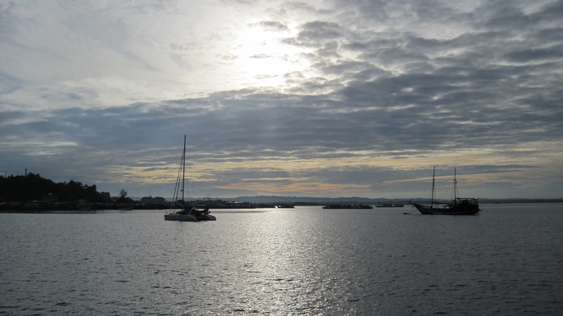 Sorong is not pretty, but it has excellent wifi and good provisioning at the Saga Supermarket. Victor Sapura (victor.s@intracodharma.com) is your man here and can help with diesel, propane, beer, and locating parts. We anchored at 00.53.172S, 131.15.600E in 70 feet of mud and plastic. This is near where the liveaboards (local dive boats for tourists) anchor and is close to the pier that the fishermen use. You can leave your dinghy at the pier when you head into town, but it is best to do so after 10:00 AM. The local fishing fleet brings their catch in during the early morning and the pier becomes quite crowded.