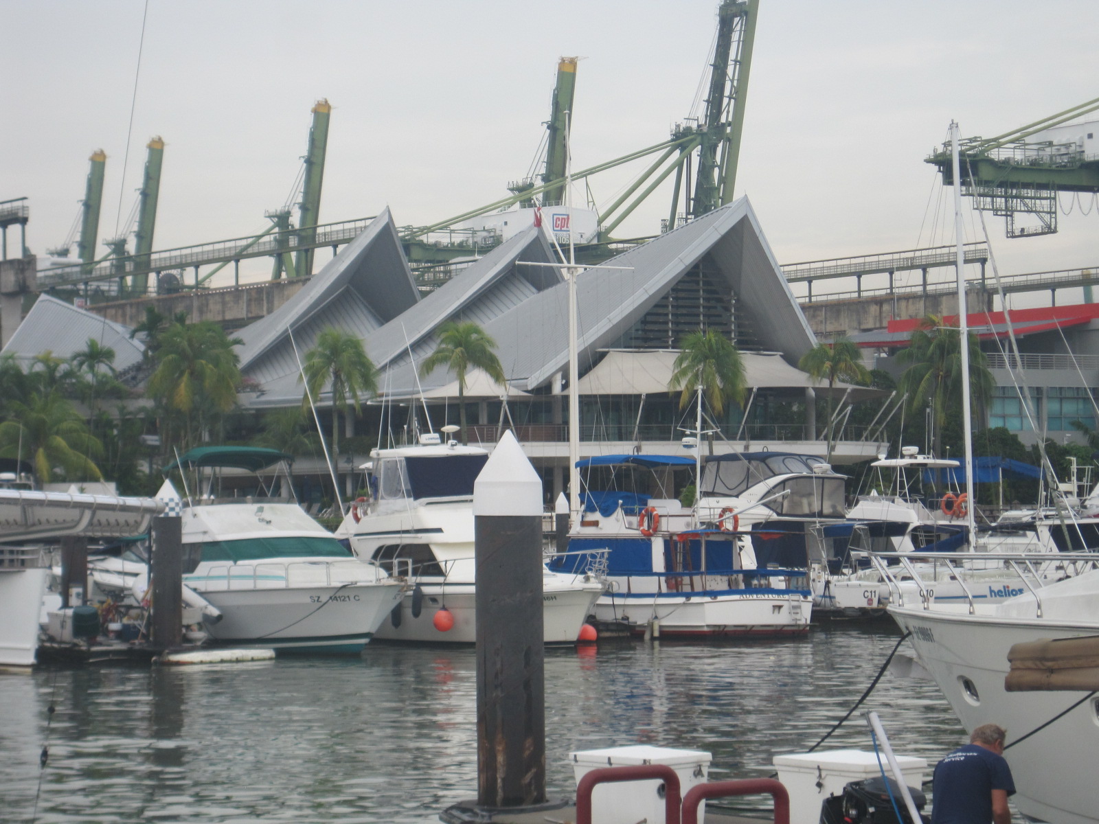 Our home in Singapore is the Republic of Singapore Yacht Club, a marina and hotel complex located between a container terminal and a public park on the island’s southwest coast. It’s a modern facility complete with a pool, gym, bar, restaurants, and even a kid’s playroom.