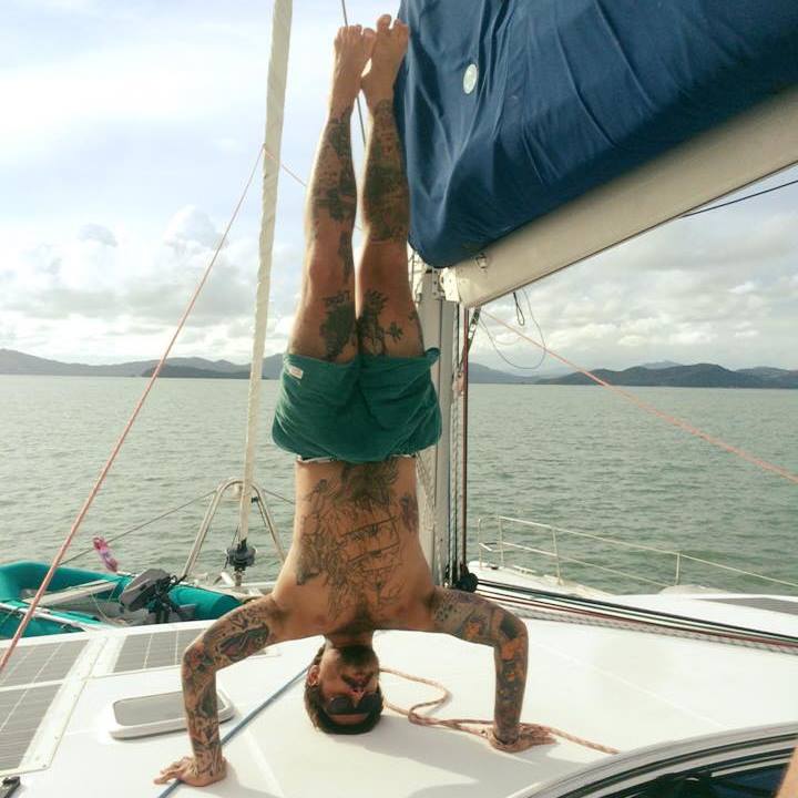 When Stephen was with us, we became friends with some backpackers on Phi Phi. Actually, it was Hazel who made the initial connection. Adz and Audrey were playing Frisbee on the beach at Phi Phi at low tide, and Hazel worked her way into their game. An hour later they joined us for a drink at the beachside restaurant where we were hanging out. Adz is a tattoo artist, and he swung by later that evening to check out the situation while Stephen and I were getting out tattoos. He thought the local guy was doing a good job and was inking clean lines. We wound up inviting Adz and Audrey for a ride back to Phuket on Sophie, and they accepted and even spent a night on board. Adz was so happy at one point that he did a headstand.