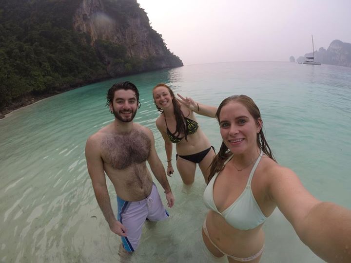 So we went back to Phi Phi, reloaded our drink bag, got into the dinghy, and then encountered a group of American kids hanging out in the water having fun and drinking beer. They seemed like our kind of people, so Danny and I invited them back to Sophie. After a little bit of consideration, they agreed, and Ella, Kevin, Maggie, Anna, and Shannon joined for a few hours on Monkey Beach.