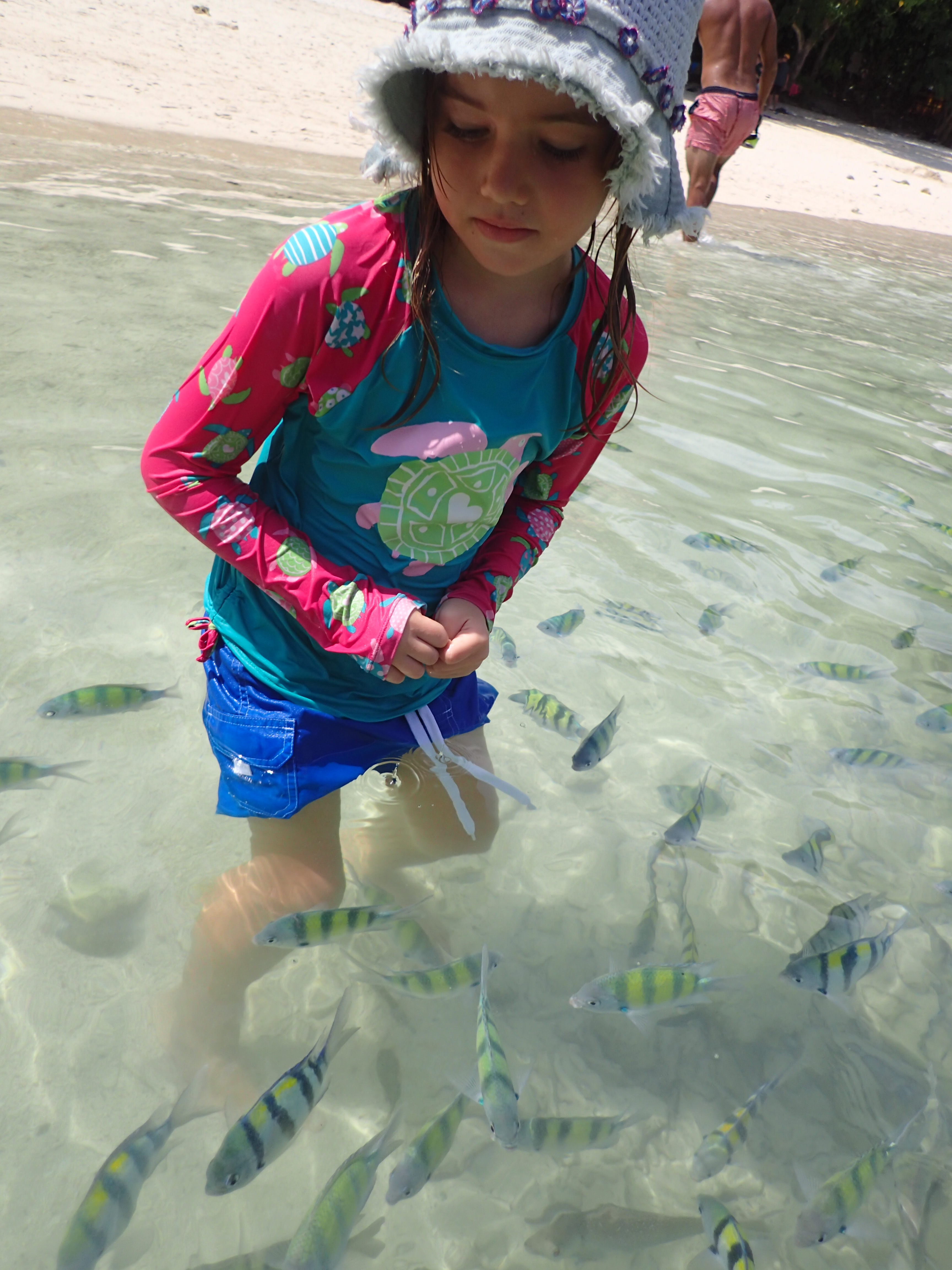 We took him into the beach, where he discovered that the fishies love themselves some Hazel.